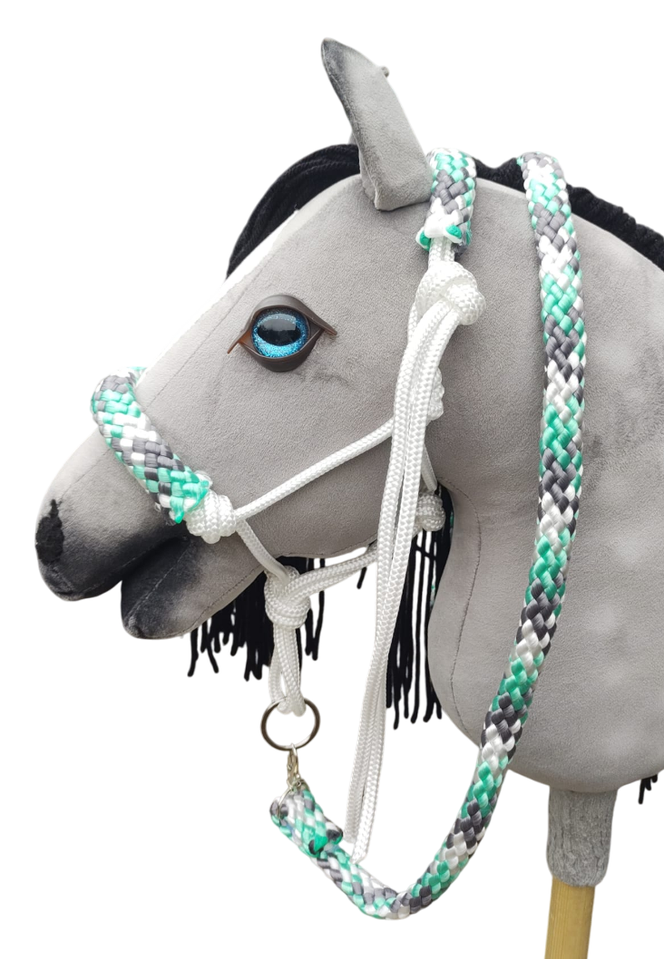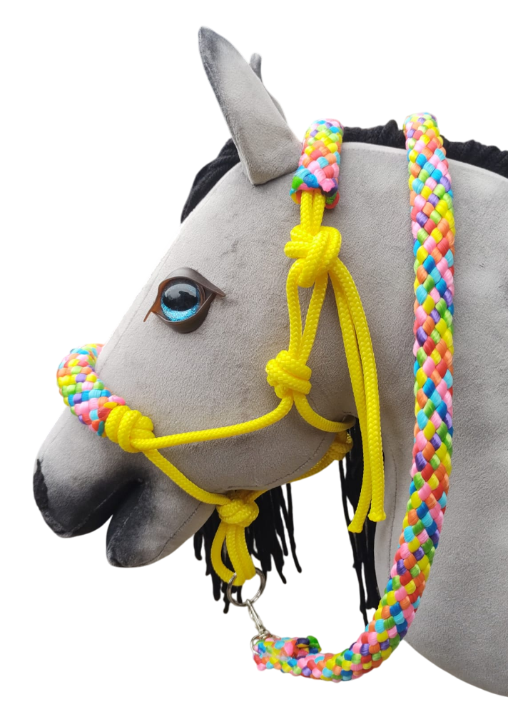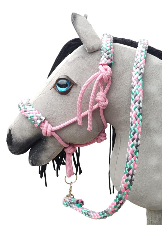 Dit mooie touwhalster is gemaakt van paracord met PPM band ter versiering er omheen. Het is op maat te verstellen en past op de meeste hobbyhorses. Verkrijgbaar in meerdere kleurstellingen!