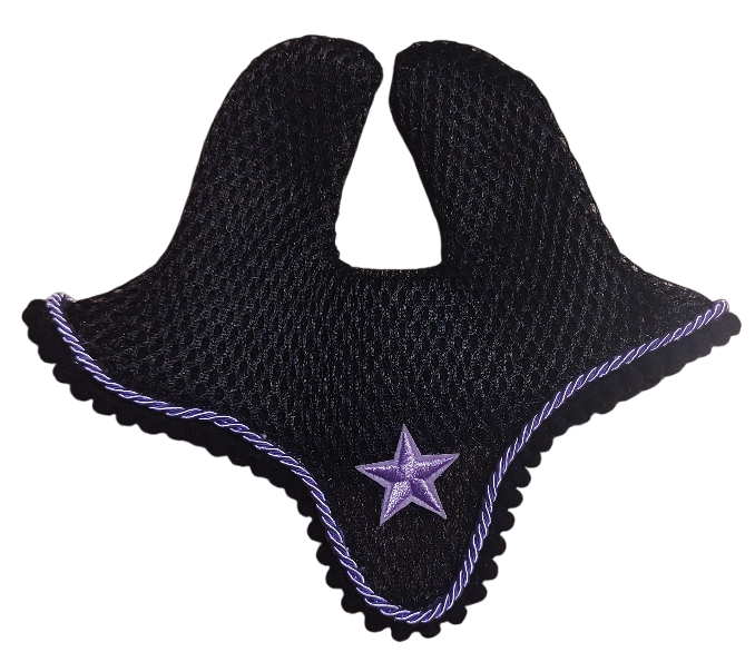 Dit mooie oornetje voor je hobbyhorse is gemaakt van fijne rekbare meshstof. Naast dat dit een beetje lijkt op een gehaakt oornetje, past het ook door de rekbaarheid op vele maten hobbyhorses. Het heeft een mooie pasvorm. De rand is afgezet met een leuke bolletjesband en een bijpassend sierkoord. De ster op de voorkant maakt het helemaal af!